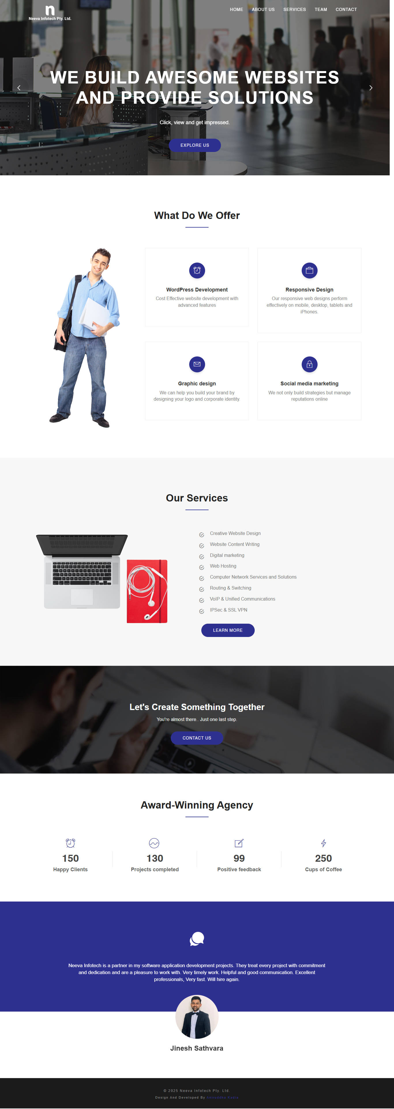 We had a great experience working with Aniruddha Kadia on the development of our website. He understood our requirements clearly and delivered a modern, responsive, and user-friendly website that aligns perfectly with our business goals. His technical expertise, attention to detail, and timely communication made the entire process smooth and efficient.